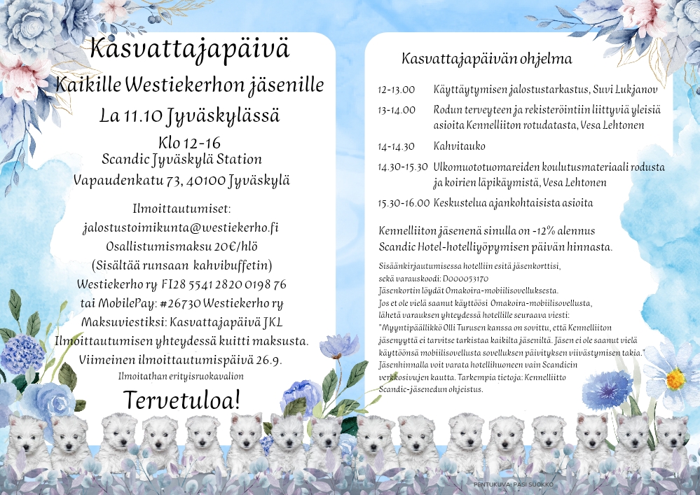 Tervetuloa, kasvattajapäivä on avoin kaikille Westiekerhon jäsenille!